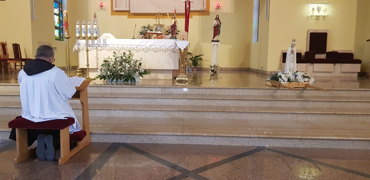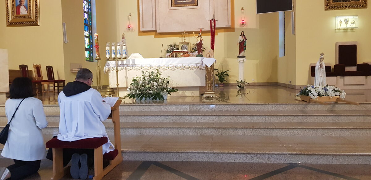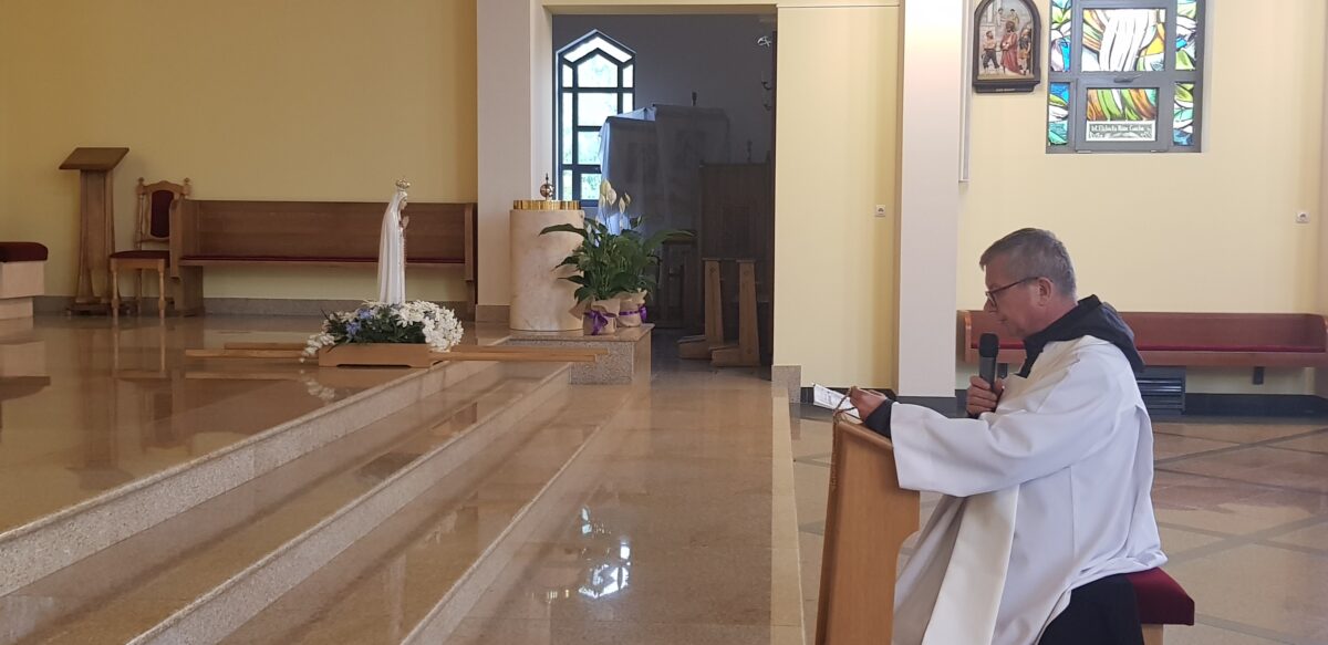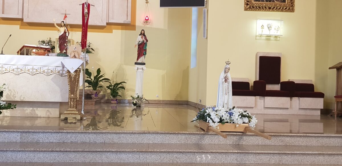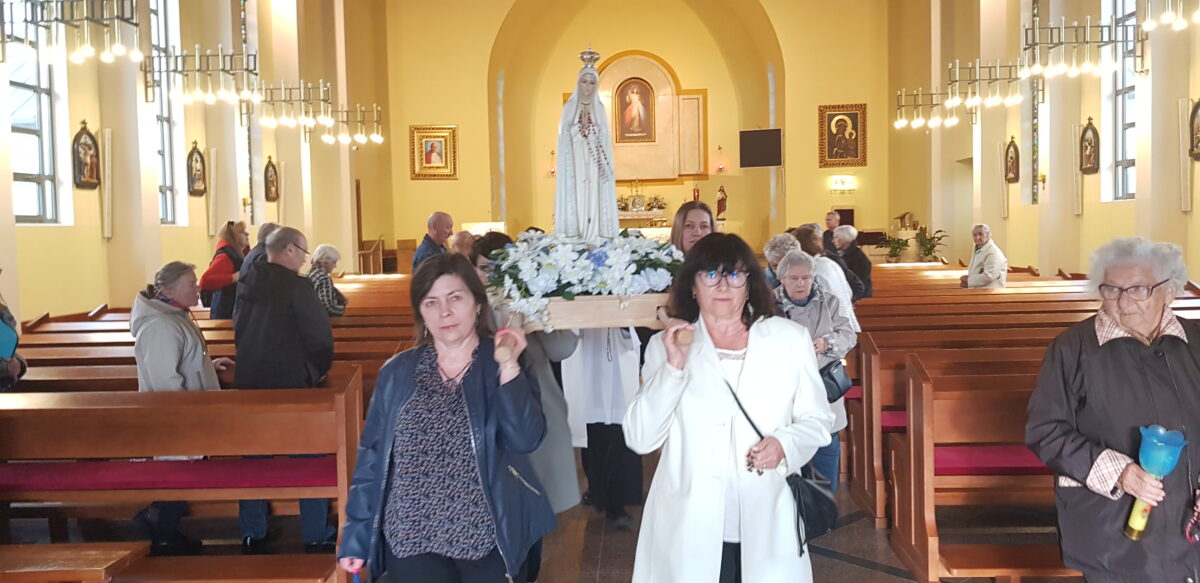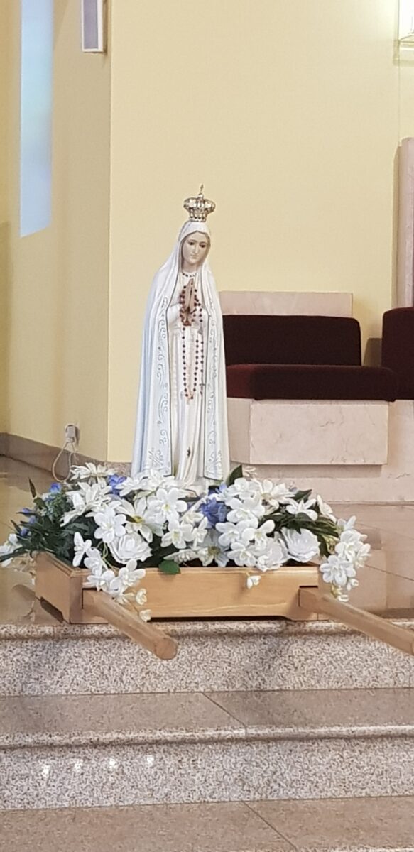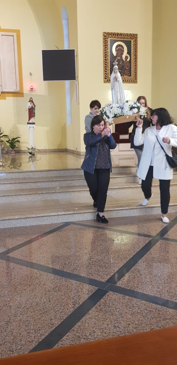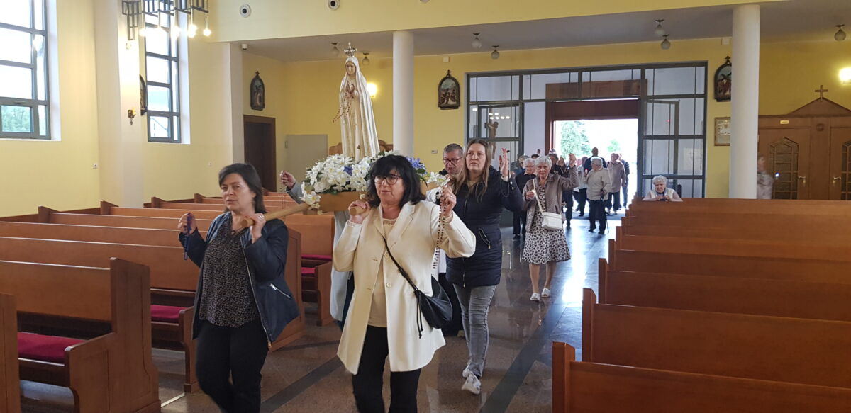 Z tą samą intencją rozpoczęliśmy dziś nabożeństwo fatimskie – wspólną modlitwę różańcową i procesję z figurą Matki Bożej Fatimskiej.