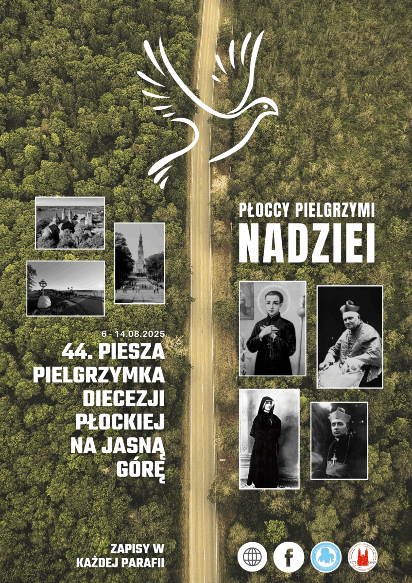 12 lipca, 20251) Tegoroczna 44. Piesza Pielgrzymka Diecezji Płockiej na Jasną Górę wyruszy pod hasłem: „Płoccy pielgrzymi nadziei”. W tym roku nawiązujemy do trwającego Jubileuszu w całym Kościele, a także do Jubileuszu płockiej diecezji.