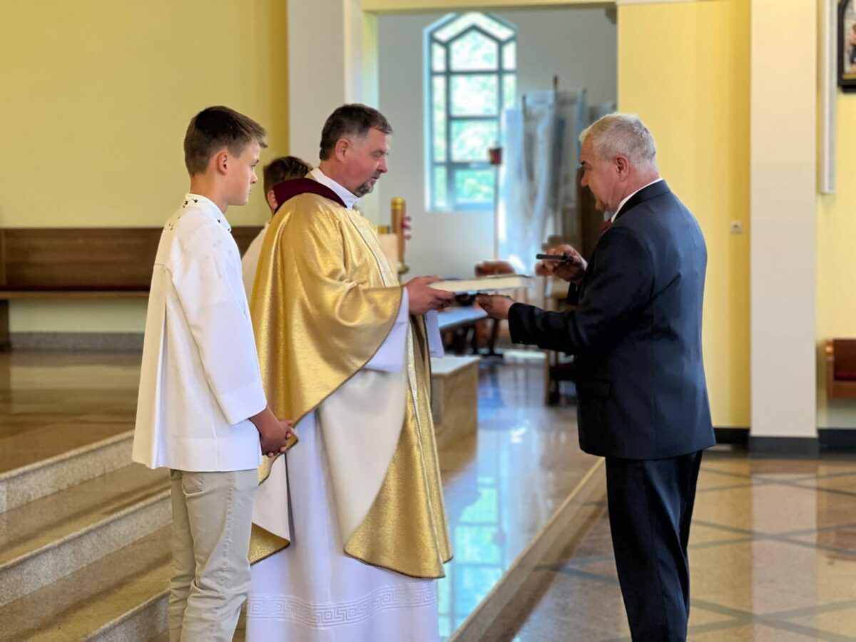 W kazaniu ks. Proboszcz wspomniał również, że 7 czerwca delegacja naszej diecezji otrzymała pamiątkową księgę jubileuszową, która przypomina, że Kościół i jego historia to jedna wielka Księga Dziejów Apostolskich, która trwa i rozwija się w nas i przez nas.
