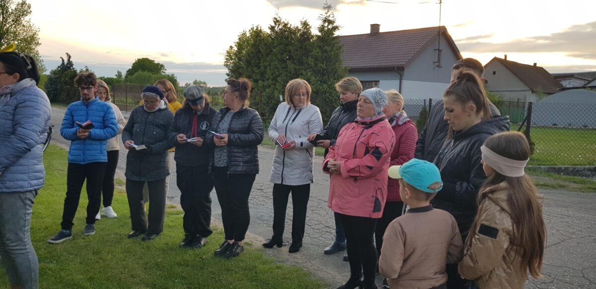 13 maja, 2025W niedzielny wieczór nabożeństwo majowe odbyło się w wyjątkowym miejscu – przy kapliczce św. Antoniego na końcu wioski Morgi. Kapliczka ta została pobudowana przez mieszkańca Antoniego Czajkowskiego, a odnowiona z troską i szacunkiem dla tradycji w roku 2016.