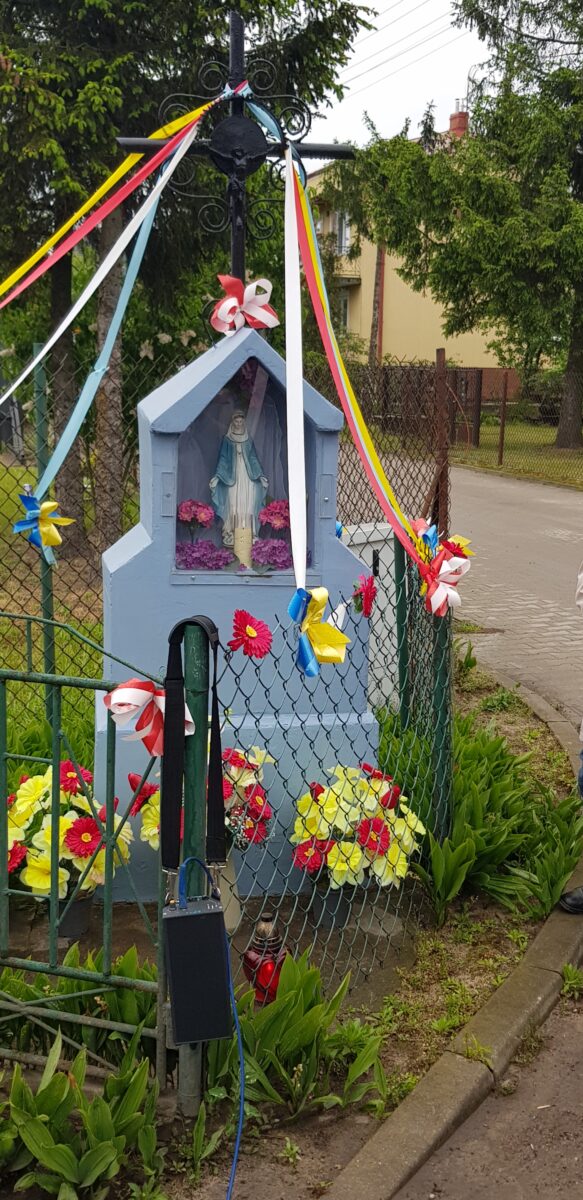 Dzisiejsze nabożeństwo majowe odbyło się przy wyjątkowej kapliczce w Nowych Pieścirogach, postawionej po II wojnie światowej przez pana Brodzikowskiego – dziadka obecnej właścicielki posesji, pani Jasi. Kapliczka ta była wotum wdzięczności za ocalenie życia i zakończenie wojny.