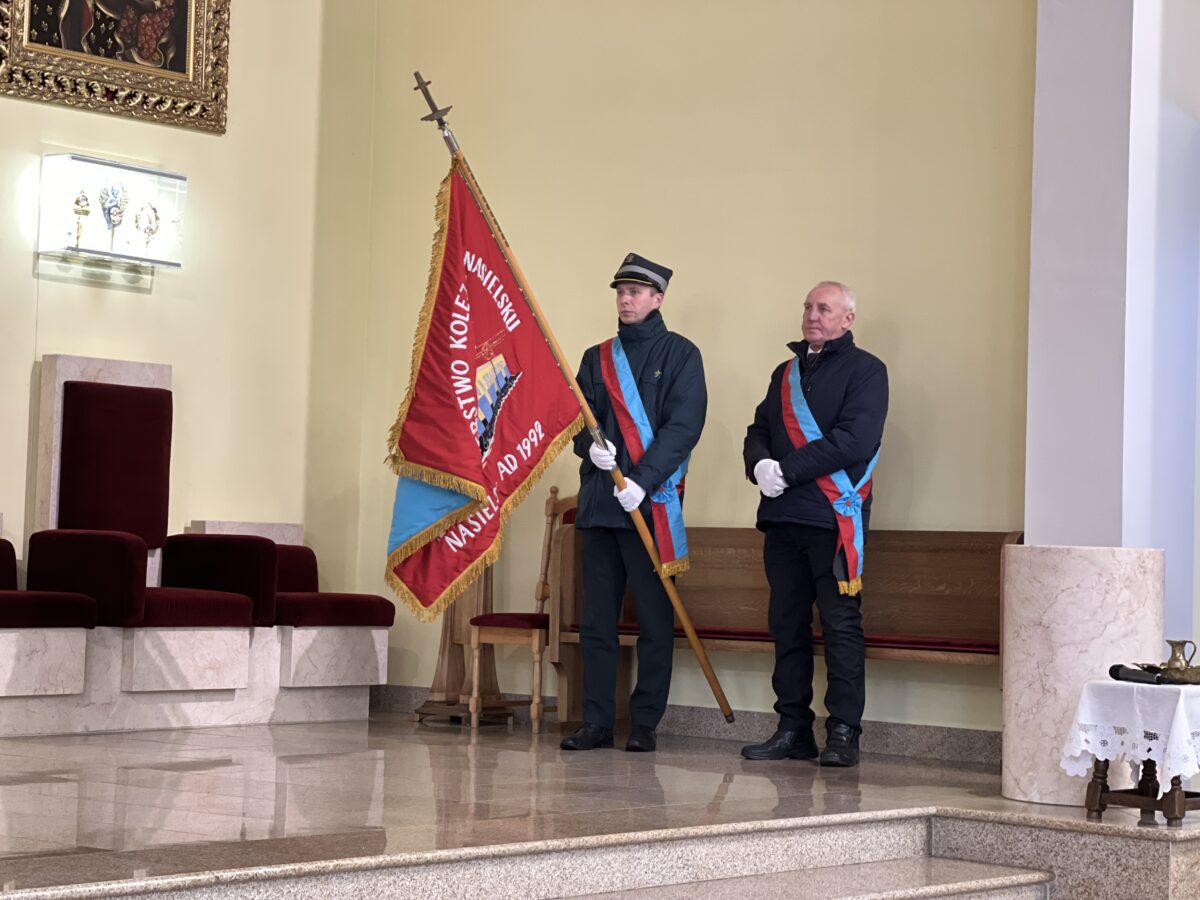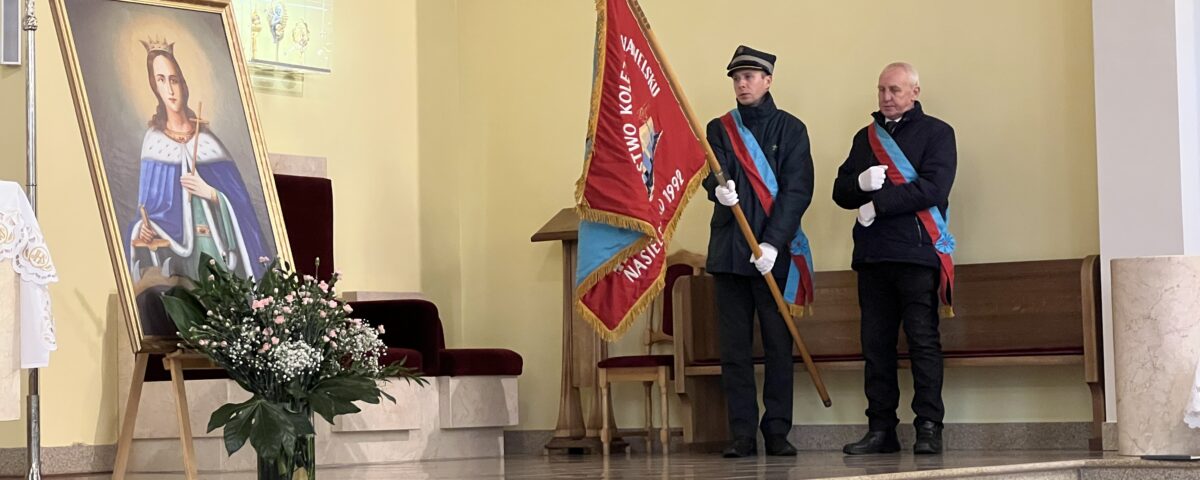 Nie zabrakło także reprezentacji pocztu sztandarowego kolejarzy z panem Łukaszem na czele oraz panem Kazimierzem. Dziękujemy za waszą obecność – w końcu św. Katarzyna to patronka kolejarzy.