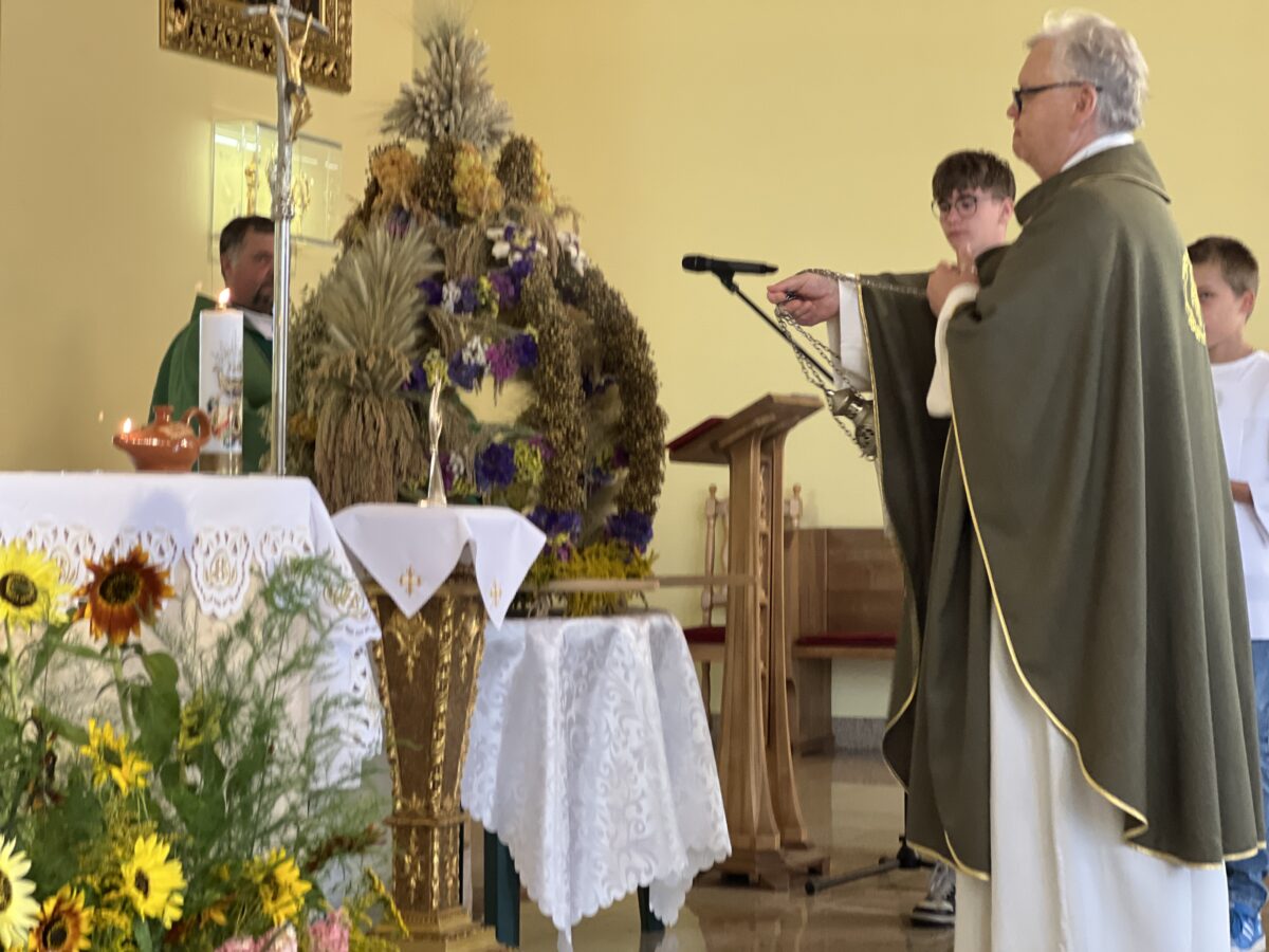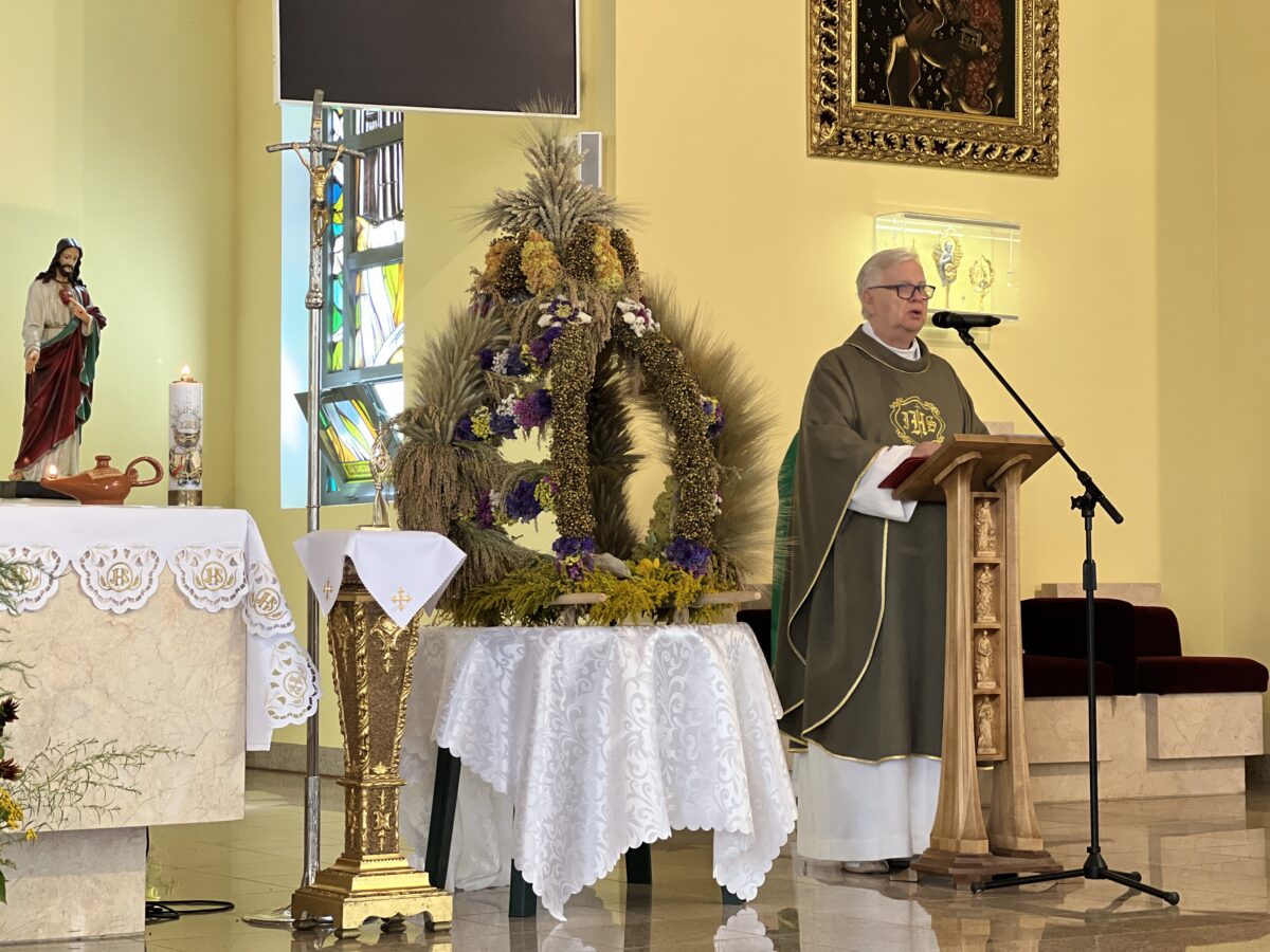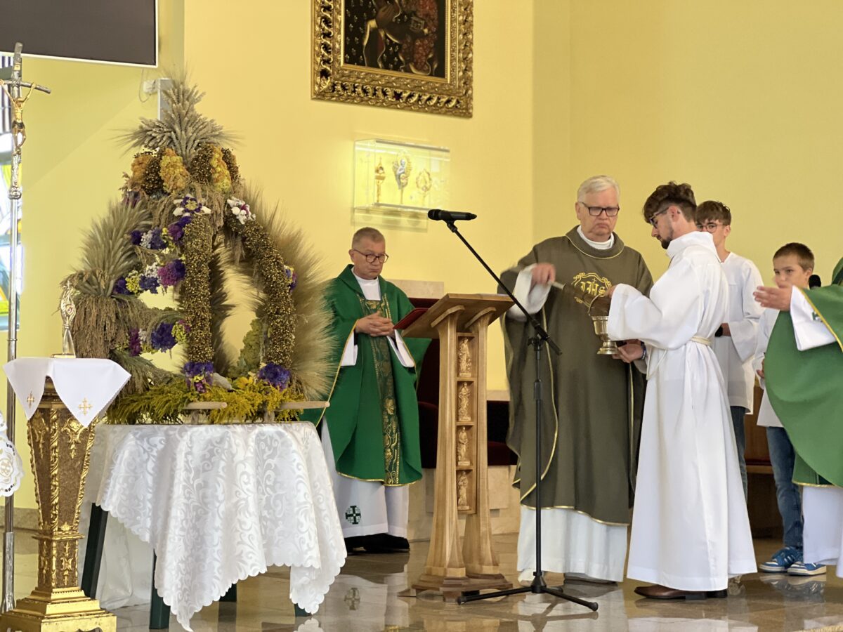 Każda Eucharystia jest dziękczynieniem Bogu za otrzymane dary. W tę niedzielę nasza wspólnota parafialna w szczególny sposób zgromadziła się, aby uwielbiać Pana za tegoroczne plony, za trud rolników, sadowników i ogrodników, oraz za Jego błogosławieństwo, które towarzyszy nam w codziennym życiu i pracy.