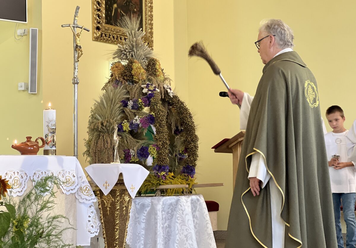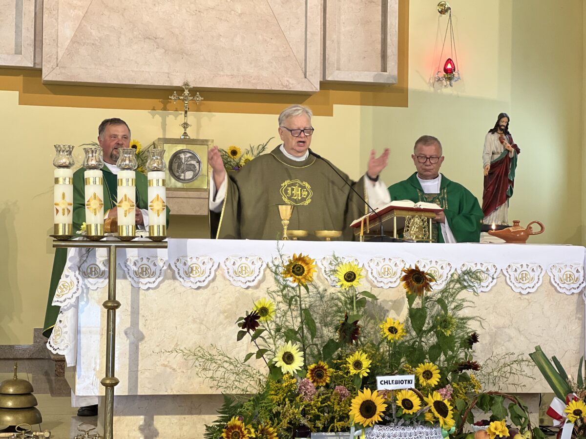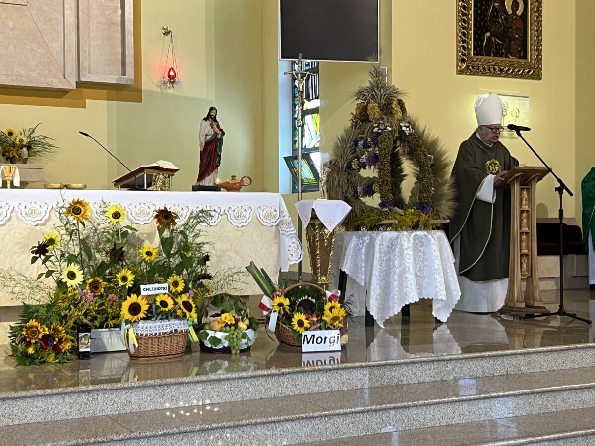 Każda Eucharystia jest dziękczynieniem Bogu za otrzymane dary. W tę niedzielę nasza wspólnota parafialna w szczególny sposób zgromadziła się, aby uwielbiać Pana za tegoroczne plony, za trud rolników, sadowników i ogrodników, oraz za Jego błogosławieństwo, które towarzyszy nam w codziennym życiu i pracy.