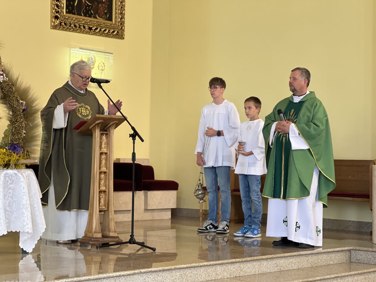 Odwołując się do bł. Rodziny Ulmów, ks. Infułat podkreślił, że ich życie i męczeńska śmierć są jak ziarna rzucone w polską ziemię – przynoszące owoce wiary, odwagi i miłości. Ukazał ich jako wzór rodziny, która – zakorzeniona w Chrystusie – była gotowa oddać życie z miłości do bliźnich. W ich świadectwie możemy odnaleźć siłę do budowania naszych rodzin jako wspólnot opartych na wierze, nadziei i miłości. Kaznodzieja wskazał też, że wdzięczność Bogu za plony ziemi powinna iść w parze z prośbą o „plony duchowe” – abyśmy jako wspólnota parafialna stawali się coraz bardziej zjednoczeni, zdolni do wzajemnej troski i miłości.
