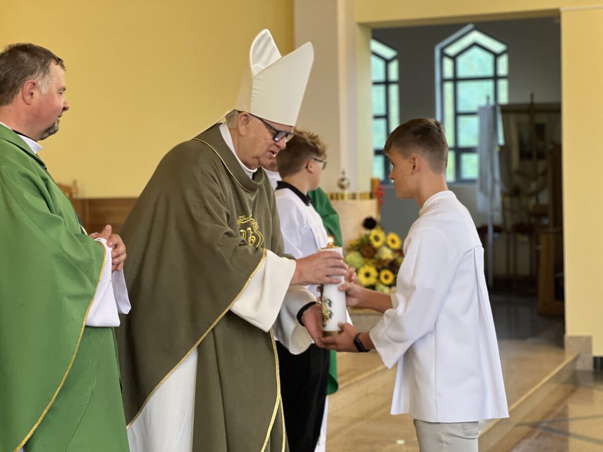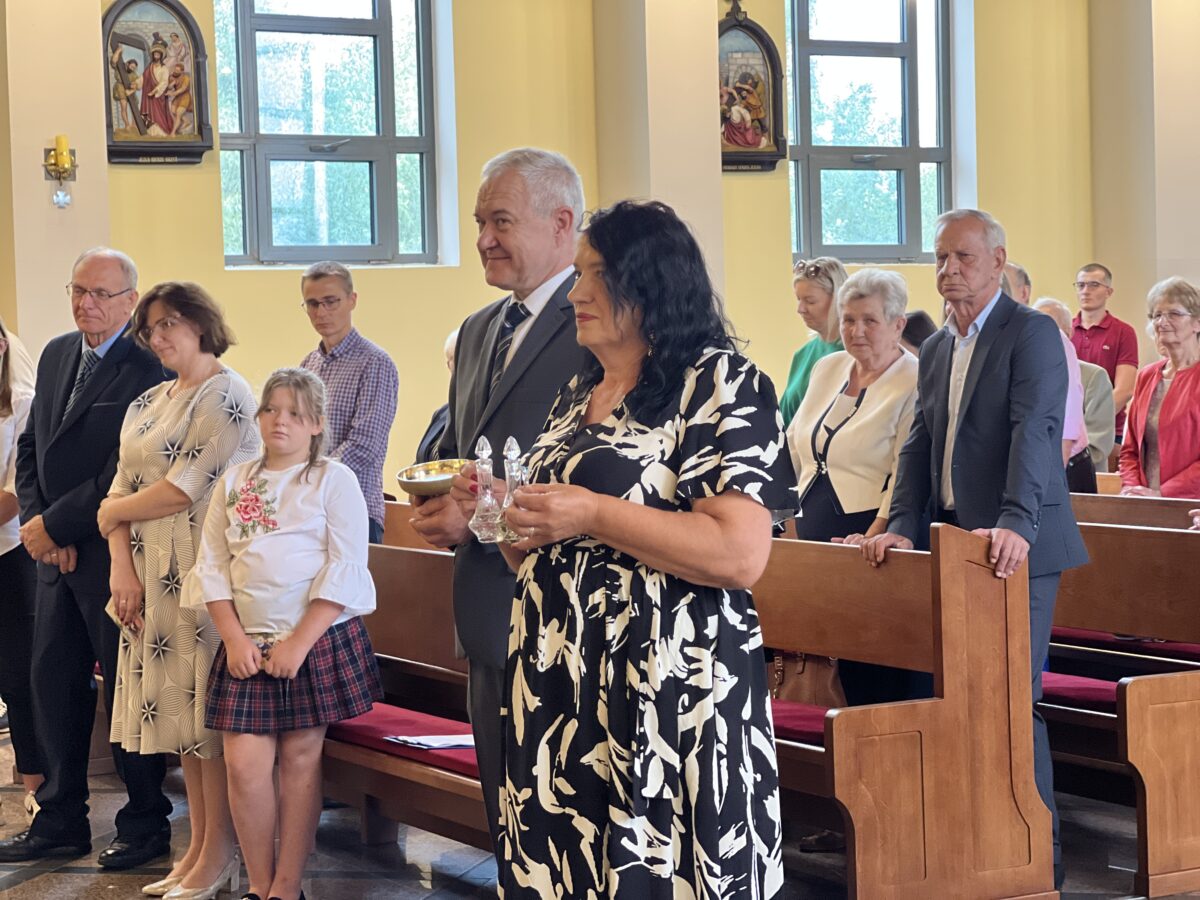 W wyjątkowym momencie naszych parafialnych dożynek przeżywaliśmy także radość przyjęcia do naszej świątyni relikwii pierwszego stopnia błogosławionej Rodziny Ulmów z Markowej. To niezwykły dar dla naszej parafii – świadectwo wiary, miłości i odwagi, które pozostaje z nami na zawsze. Relikwie przekazane zostały przez Abpa Adama Szala, a do naszej świątyni wprowadził je ks. Infułat Marek Smogorzewski, główny celebrans uroczystej Mszy Świętej.