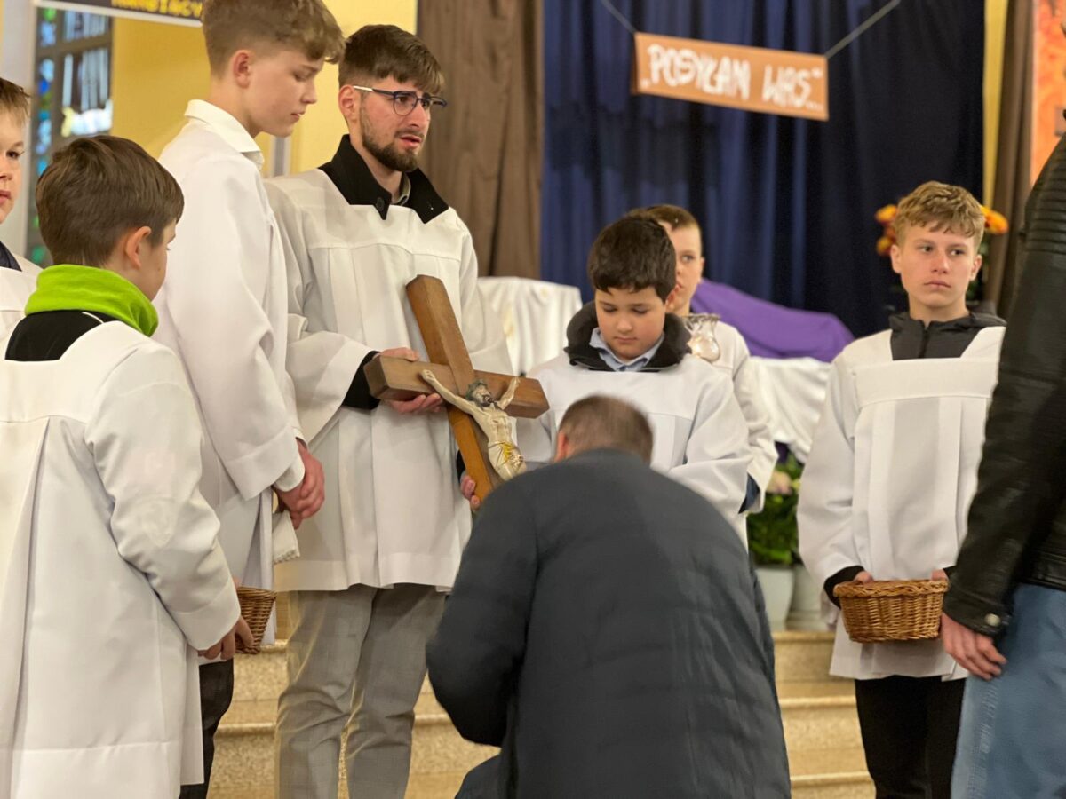 W modlitwie i skupieniu przeżywaliśmy tajemnicę cierpienia i śmierci Jezusa Chrystusa. Podczas liturgii została odczytana Męka Pańska, a centralnym momentem była uroczysta celebracja Krzyża – znaku największej ofiary i zwycięstwa miłości nad grzechem i śmiercią. W skupieniu i pokorze podchodziliśmy, by ucałować krzyż – wyznając w ten sposób naszą wiarę i wdzięczność.