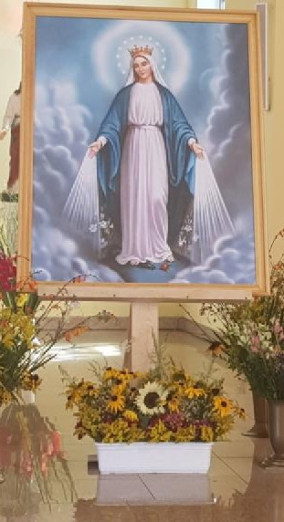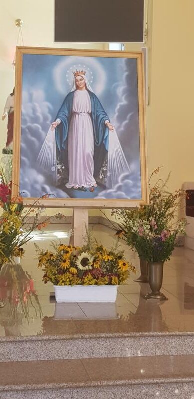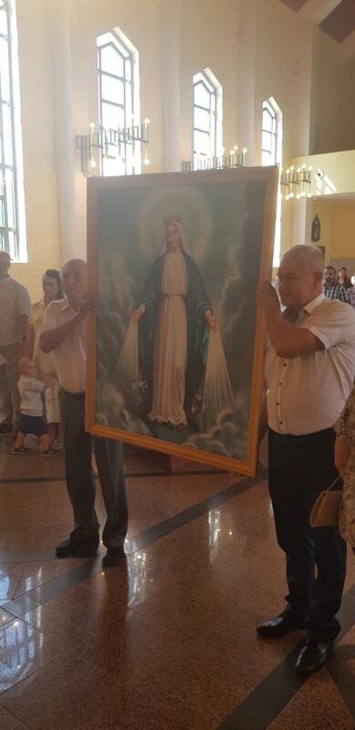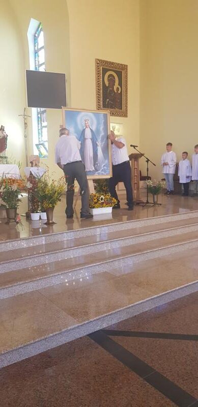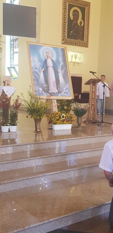 23 sierpnia, 2025W dniu Uroczystości Wniebowzięcia Najświętszej Maryi Panny, podczas Mszy Świętej o godz. 11:00, do ołtarza został złożony w darach obraz Matki Bożej Niepokalanie Poczętej, ofiarowany przez Koło Gospodyń Wiejskich. Za ten piękny dar składamy serdeczne podziękowania.