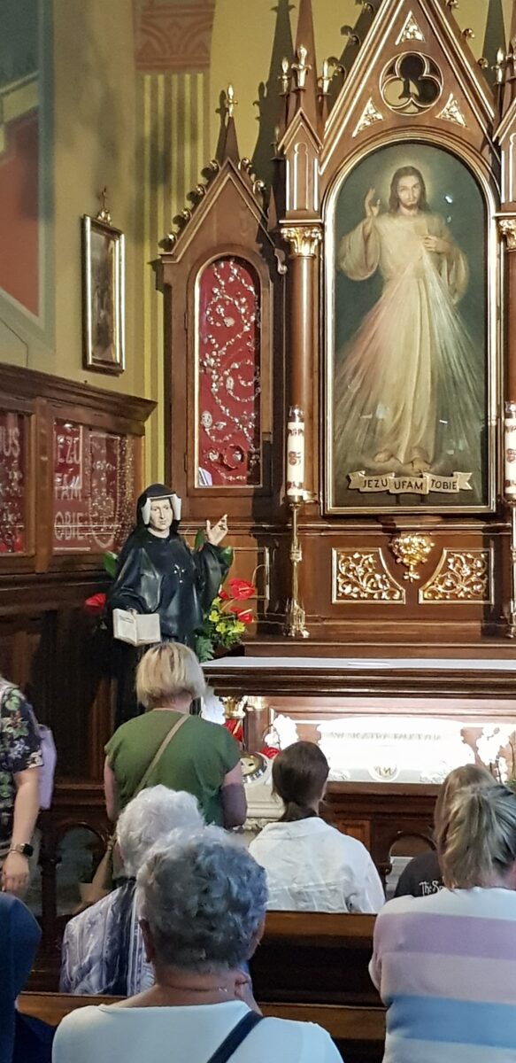 Uczestnicy pielgrzymki z naszej parafii, udali się następnie do Krakowa – Łagiewnik. Zobaczyli celę św. s. Faustyny, modlili się przy Jej grobie, oraz uczestniczyli w krótkiej adoracji Najświętszego Sakramentu w Sanktuarium Bożego Miłosierdzia w Łagiewnikach.