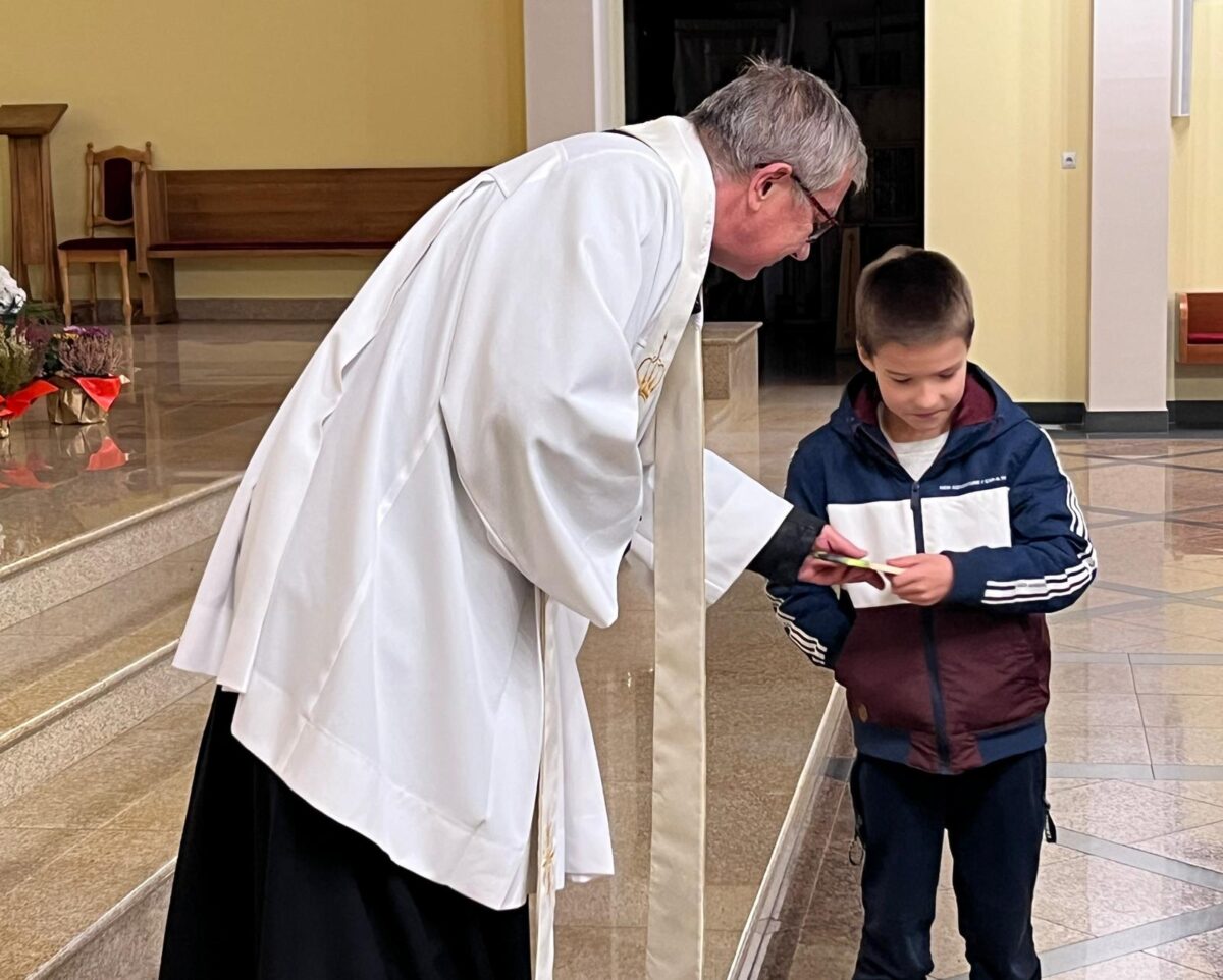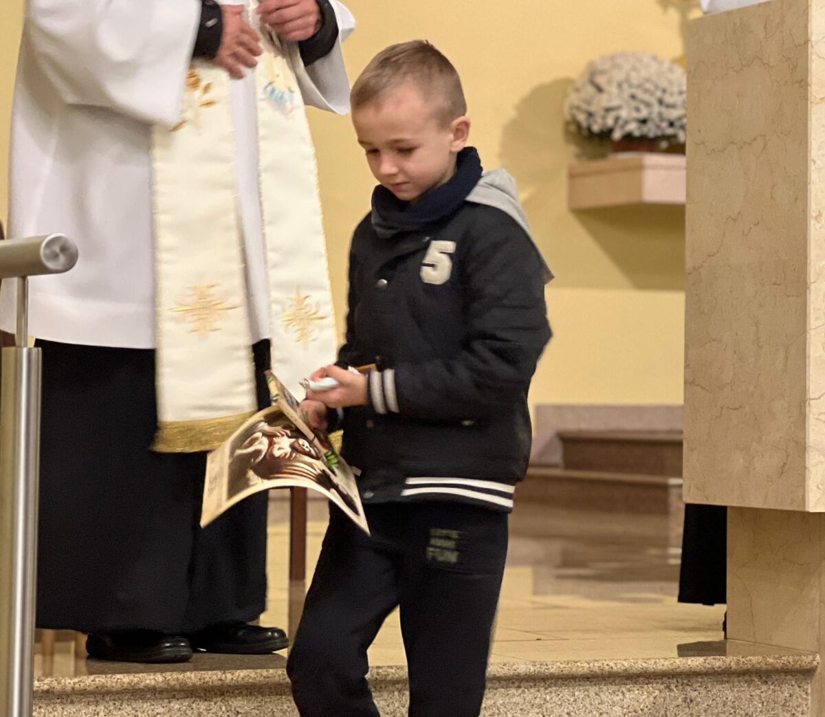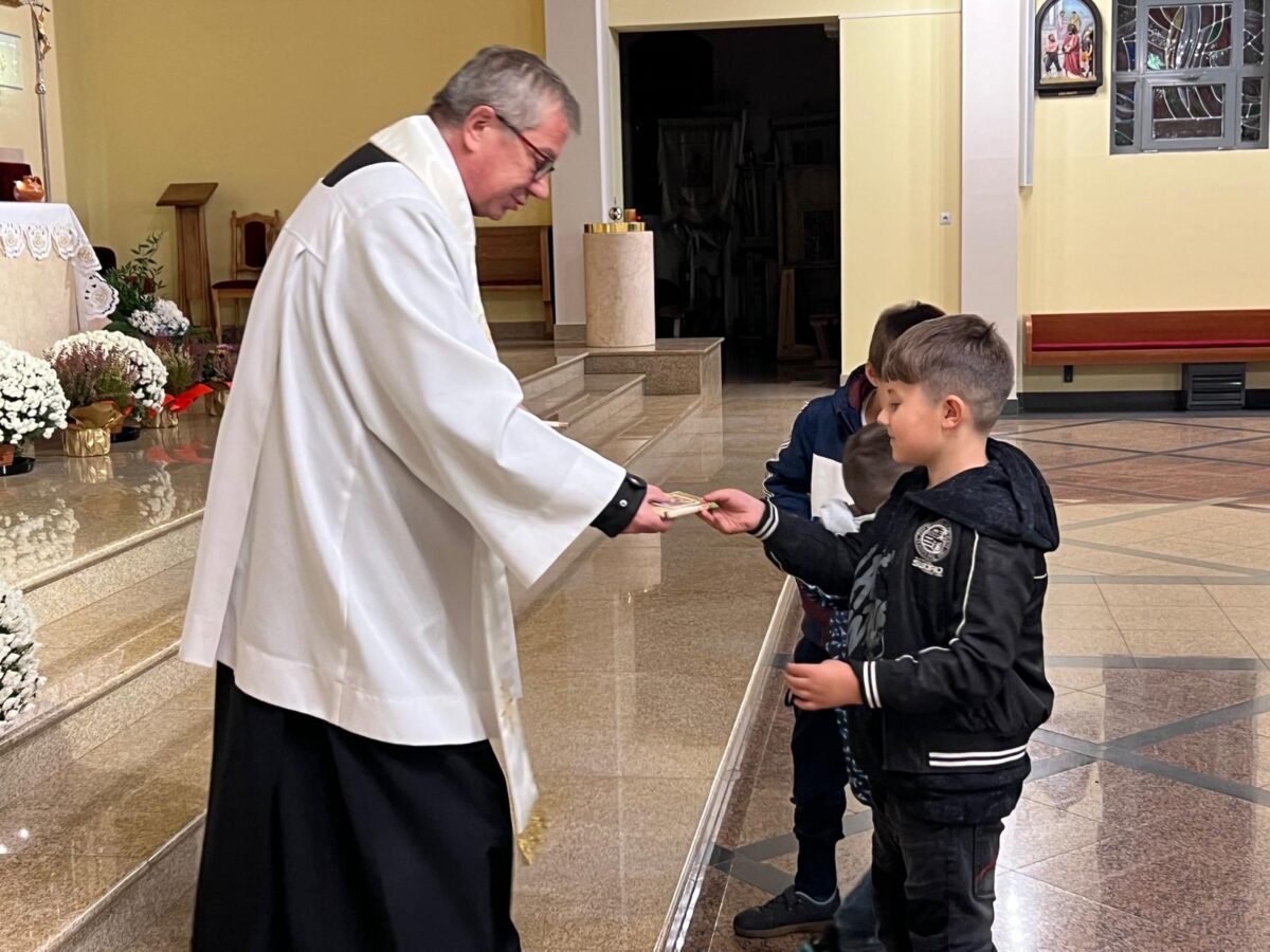 3 listopada, 202531 października, ostatniego dnia wspólnej modlitwy różańcowej w kościele. Modliliśmy się w intencji kandydatów do bierzmowania oraz naszej parafialnej scholi. Po różańcu odbyło się losowanie nagród za udział w tegorocznej modlitwie. 13 dzieci przyniosło wyklejanki, lecz tyko 6-cio miało wszystkie karteczki. Wśród tej 6-stki została wylosowana figurka MB z Góry Karmel, MB Szkaplerznej. Wylosował ją uczeń kl. III Tymoteusz K.. pozostał 5-tka również została obdarowane: figurkami, MB Fatimskiej, świecą z wizerunkiem Maryi, oraz innymi religijnymi gadżetami.